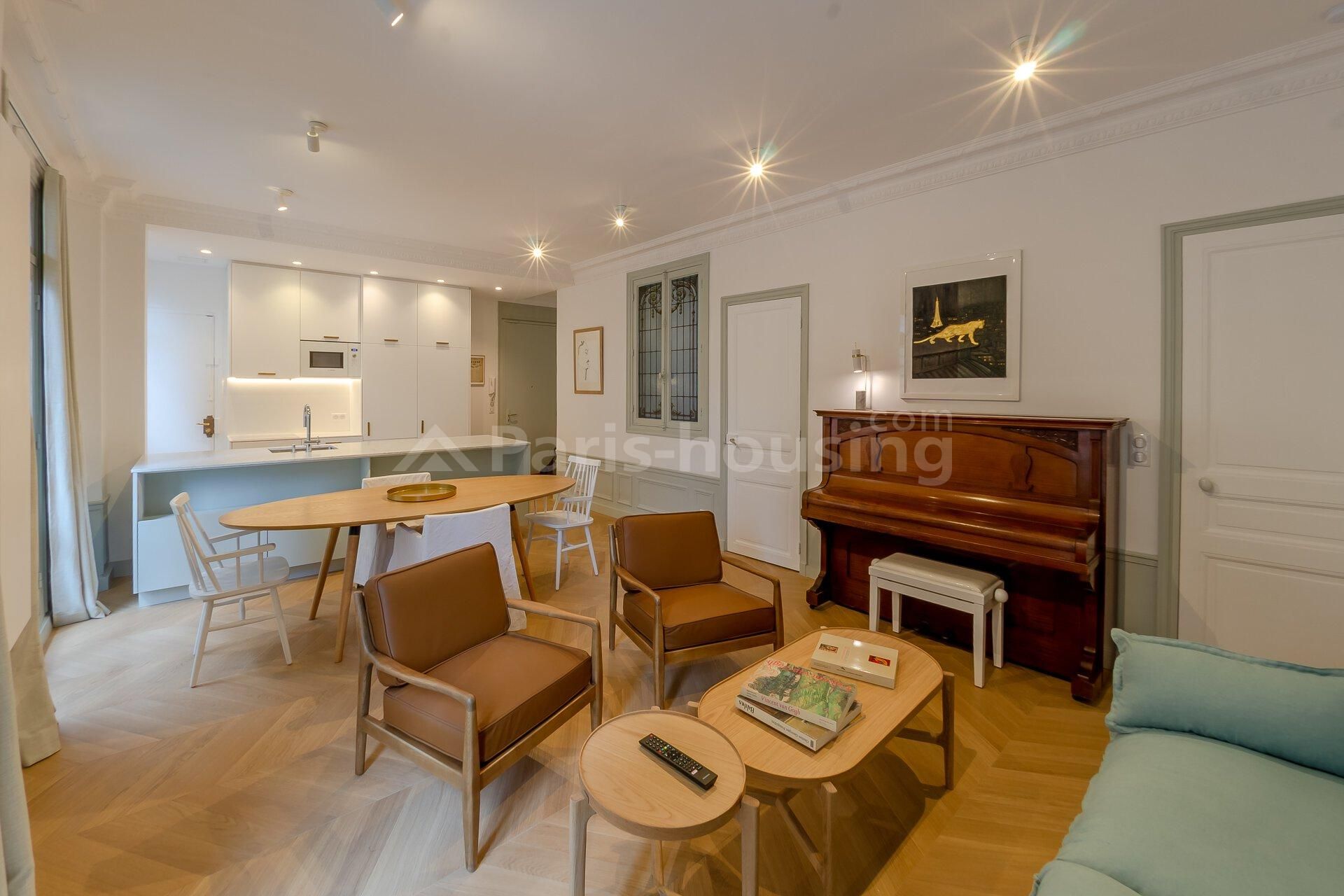 Furnished two-bedroom apartment for rent, located rue Chardin in the 16th arrondissement of Paris, near the Passy station (Line 6) and the Trocadéro gardens. On the 3rd floor of a modern luxury building with lift.With 67 m² of living space, the apartment comprises an entrance hall, spacious living room, separate fitted kitchen, two bedrooms opening onto a wooded courtyard, bathroom and separate toilet. Practical, it comes with a cellar and parking space.Minimum rental period of 12 months, exclusively for corporate lease or secondary residence (civil code lease).The monthly rent, is 2860 euros including charges (280 euros). Heating and hot water are included in the communal charges.Rental management of this apartment is handled by Paris-Housing, guaranteeing professional, reliable support throughout your stay.