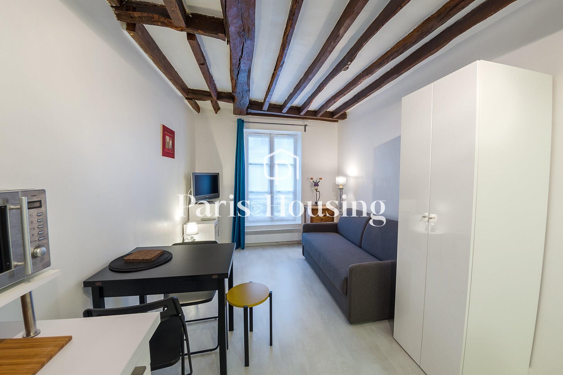Furnished studio located on rue Nollet in the 17th arrondissement, close to Pont Cardinet (line 14), La Fourche (line 13), and Place de Clichy (lines 2 and 13) metro stations.Situated on the ground floor of a 1910 building, it features a living area with a sofa bed and equipped kitchenette, as well as a shower room with WC. Individual heating and hot water (electric).Furnished rental available for a minimum duration of 6 months, suitable for primary residence, company lease, or secondary residence (civil code lease).Rent is 960 euros per month, including charges (65 euros).